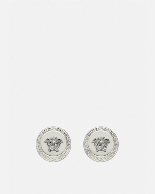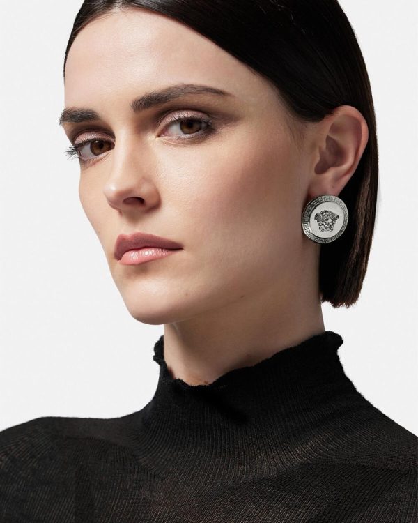 Medusa studs Greek Key details make any look stand out. This piece has a vintage effect colour quality. All Versace Jewellery products are lead and nickel free. All the materials are hypoallergenic.