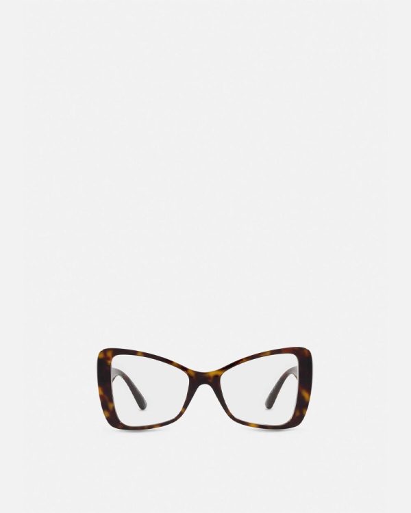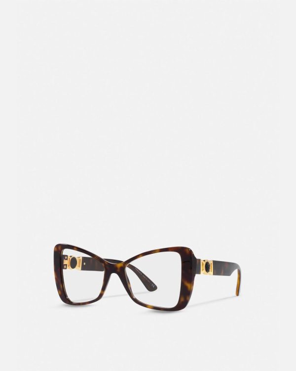 Inspired by namesake hip-hop figure, these butterfly-shaped square optical glasses have tortoiseshell acetate frames and Medusa-embellished temples.