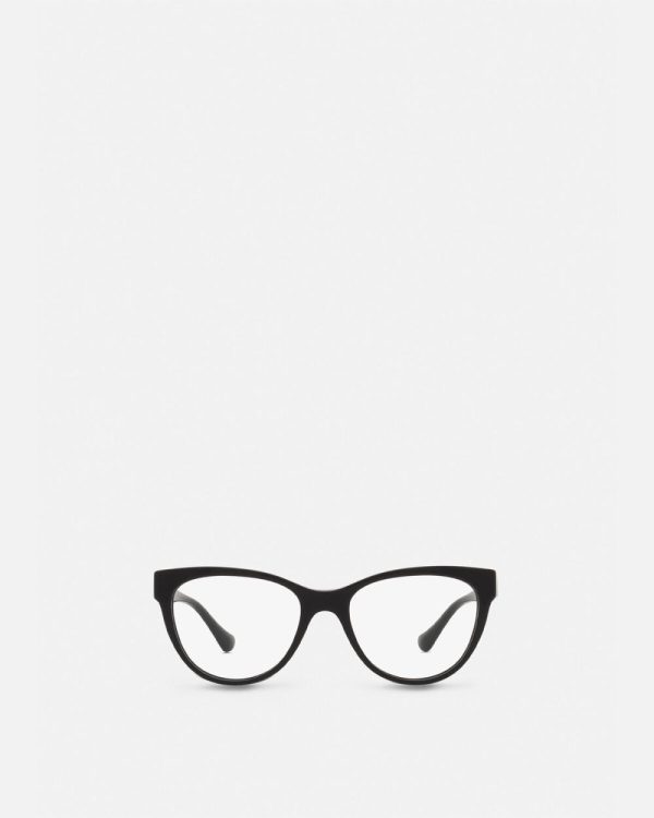 A timeless design, these glasses are defined by gold-toned Medusa plaques on the temples. The classic rectangular shaped design features a timeless black acetate frame.