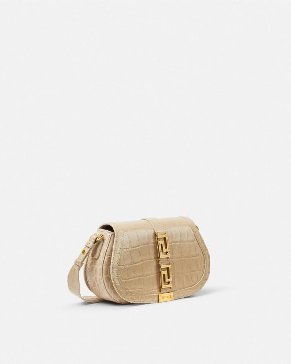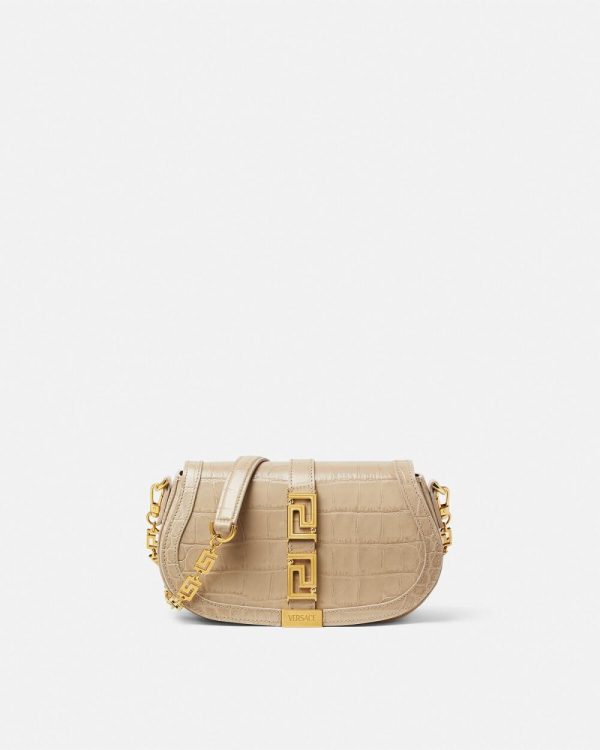 Harnessing Versace’s reverence for myth and culture, the Greca Goddess line is characterized by the central Greca chain hardware and detachable chain strap. Crafted in Italy from croc-effect embossed leather, it features a spacious interior with an additional slip compartment. An interchangeable leather strap can be adjusted for shoulder, crossbody or hand carry options.
