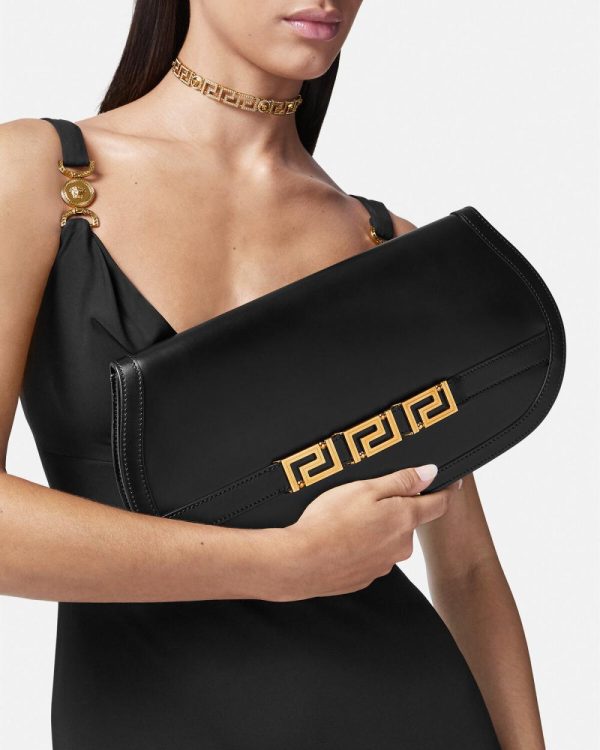 Greca Goddess | Women Versace Greca Goddess Clutch Black