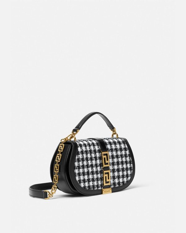 Harnessing Versace’s reverence for myth and culture, the Greca Goddess line is characterized by the central Greca chain hardware and detachable chain strap. Crafted in Italy from smooth leather, the crossbody features a spacious interior with an additional slip compartment. The top handle in this design allows for a hand-carry option.