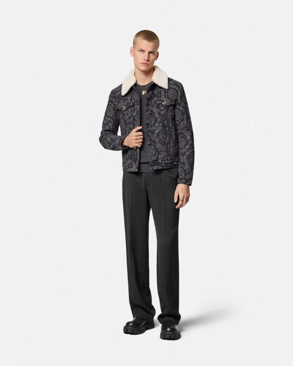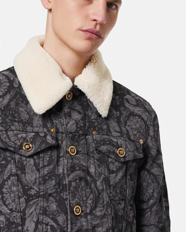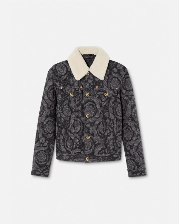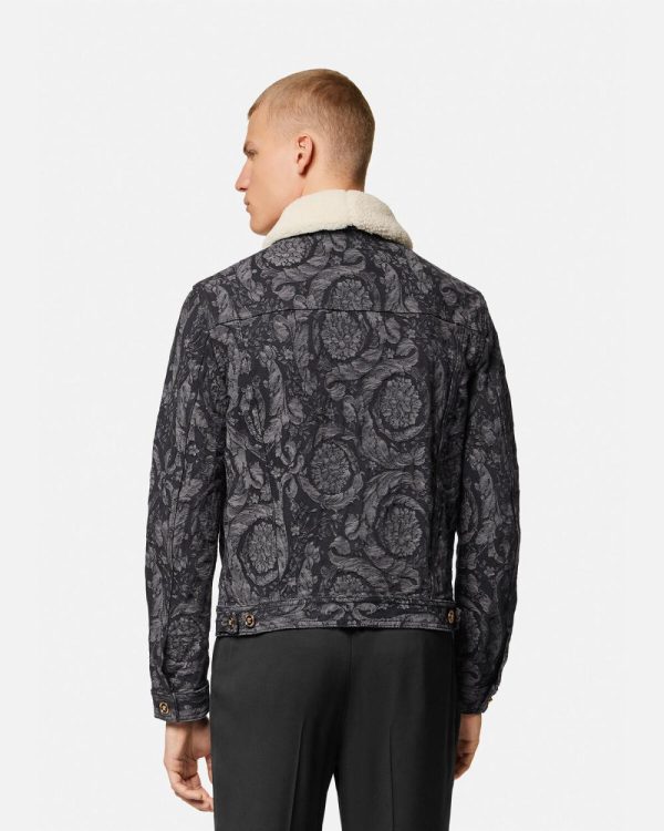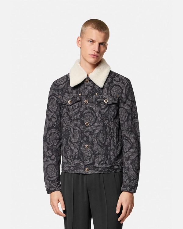 Jackets & Coats | Men Versace Barocco Silhouette Denim Jacket Black