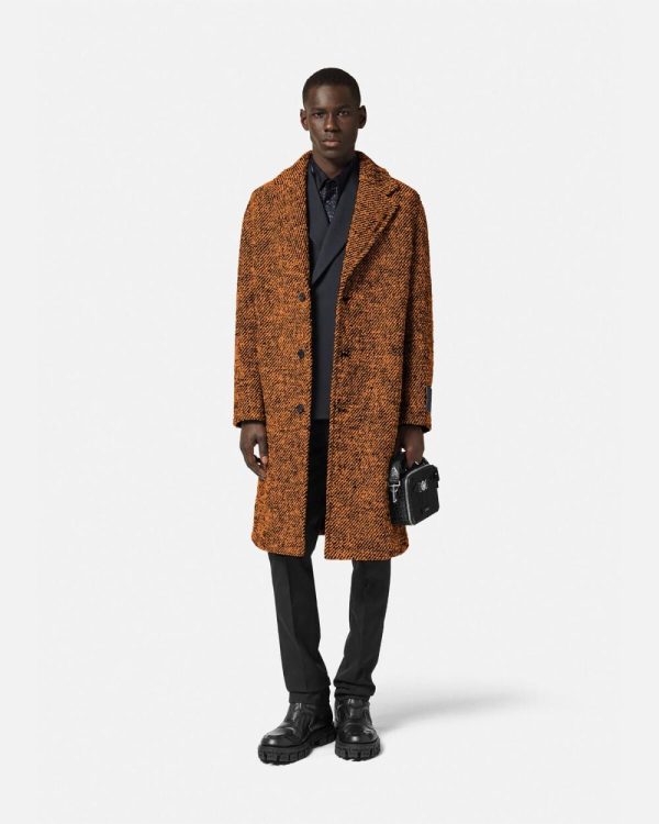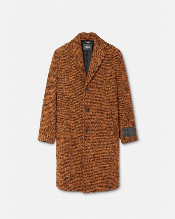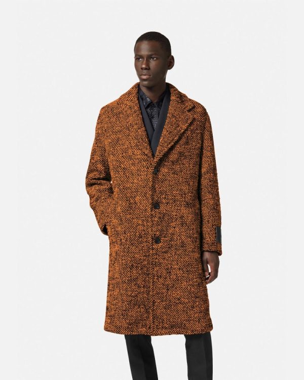 Jackets & Coats | Men Versace Bouclé Long Coat Orange