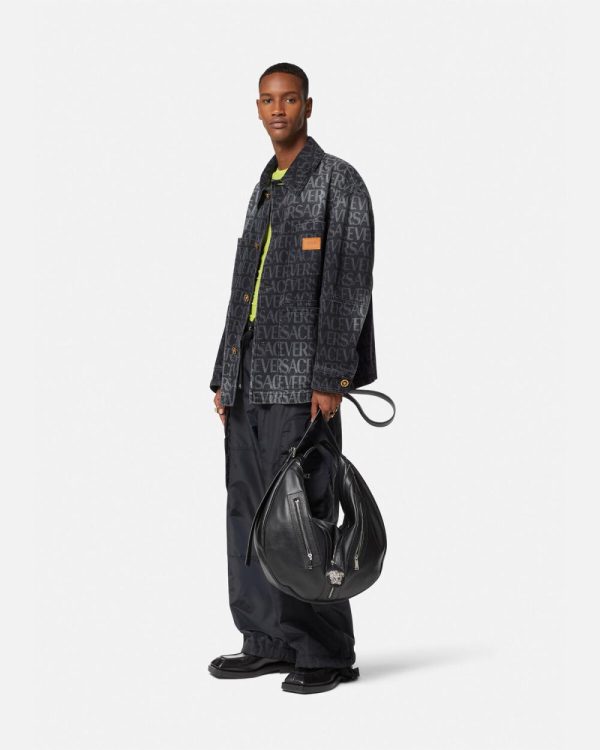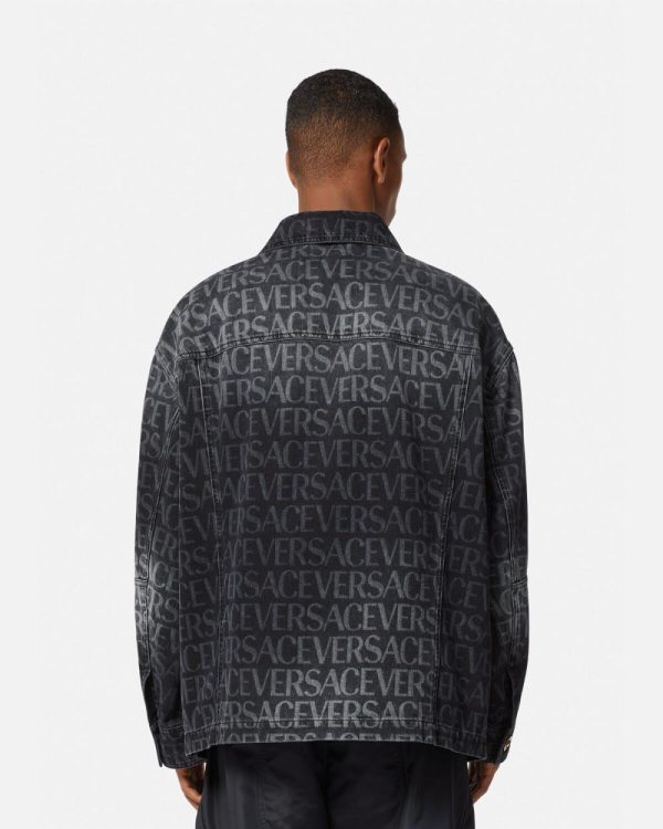In a boxy fit, this denim jacket features a washed Versace Allover logo, accented by enamel Medusa buttons. The collared style is finished with a leather logo patch and dual patch and side pockets.