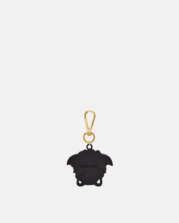 A fun accessory to compliment Versace bags, belts and more, this rubber keyring is shaped as the signature Versace emblem, La Medusa.