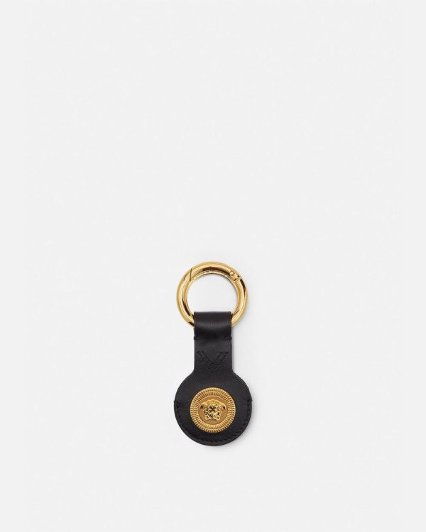 A Versace accessory with a dedicated AirTag slot, this leather key chain features the Medusa hardware.