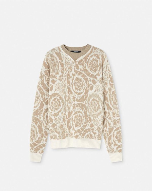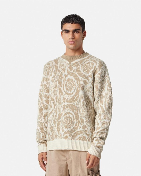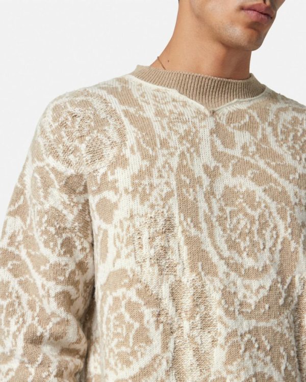 Knitwear | Men Versace Barocco Knit Sweater Beige