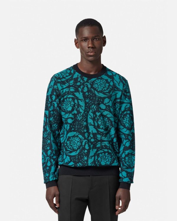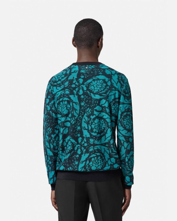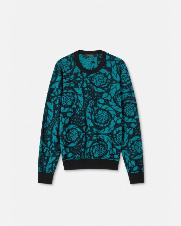 This crewneck wool-blend jumper features a two-tone vanisé jacquard knitwear technique in the Barocco Silhouette pattern.
