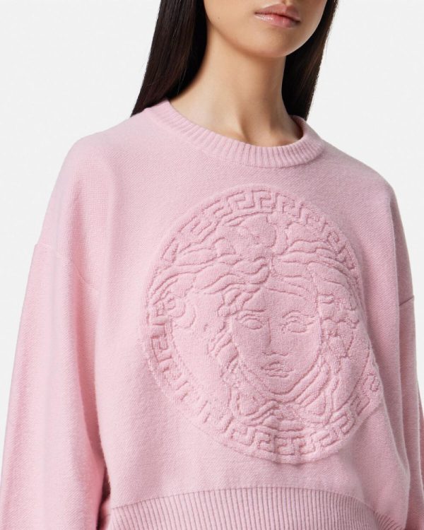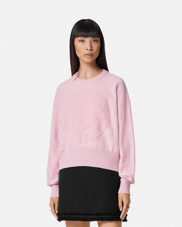 Knitwear | Women Versace Medusa Wool-Blend Knit Towel Sweater Light Pink