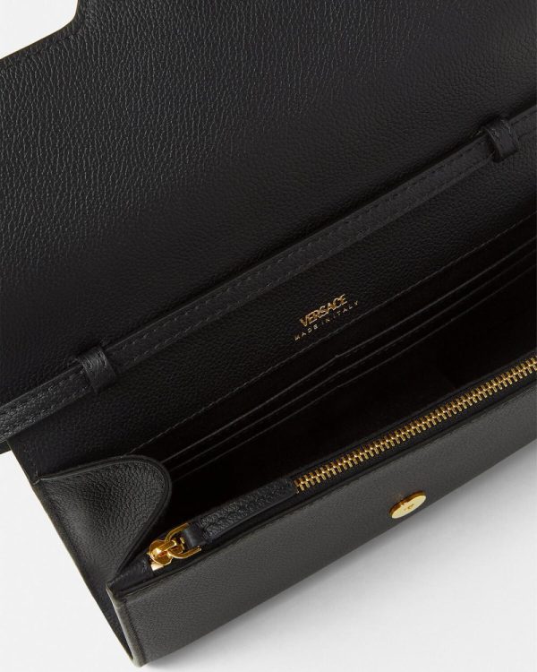 A versatile design, this crossbody bag is crafted in Italy from lightly grained calf leather. The contemporary style is adorned with a three-dimensional Medusa plaque – the same décor found on the doors of Versace’s Milanese villa.