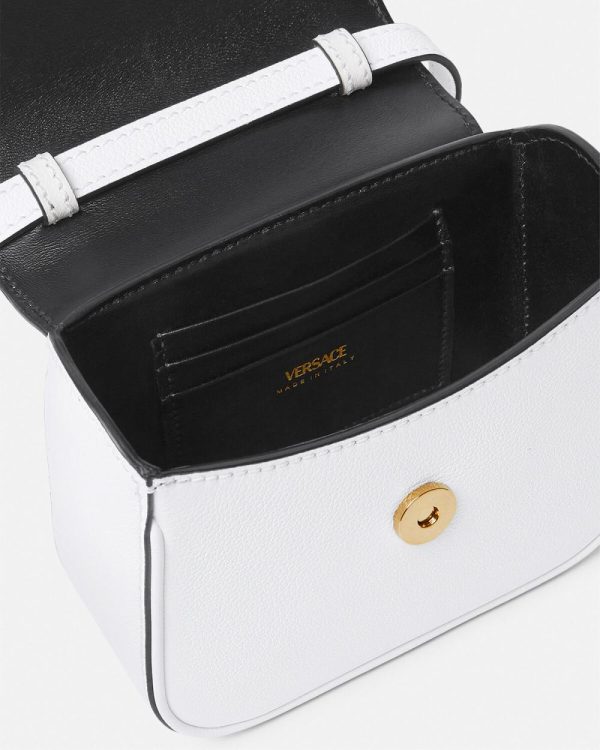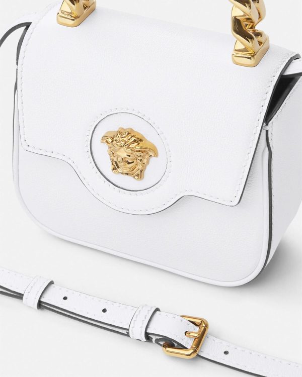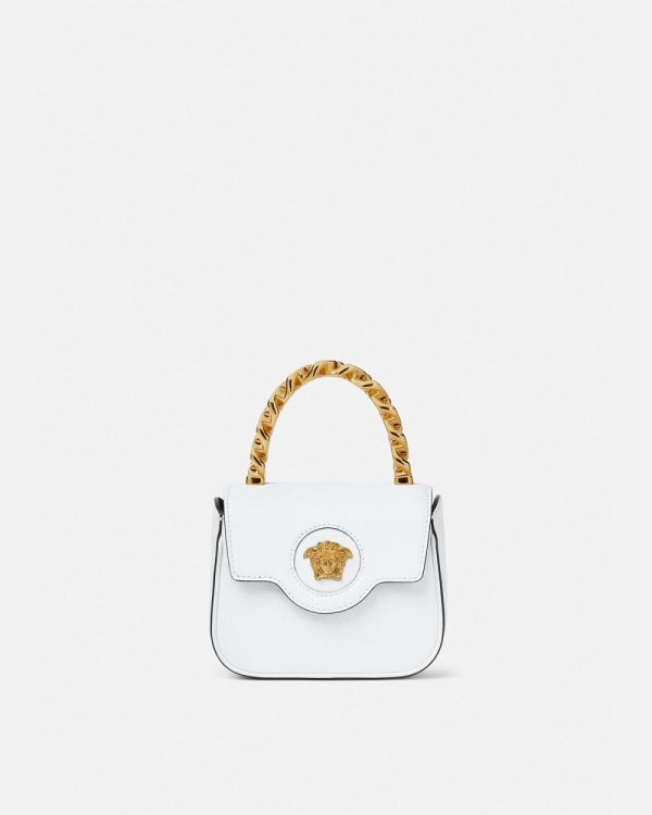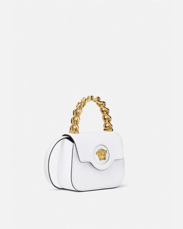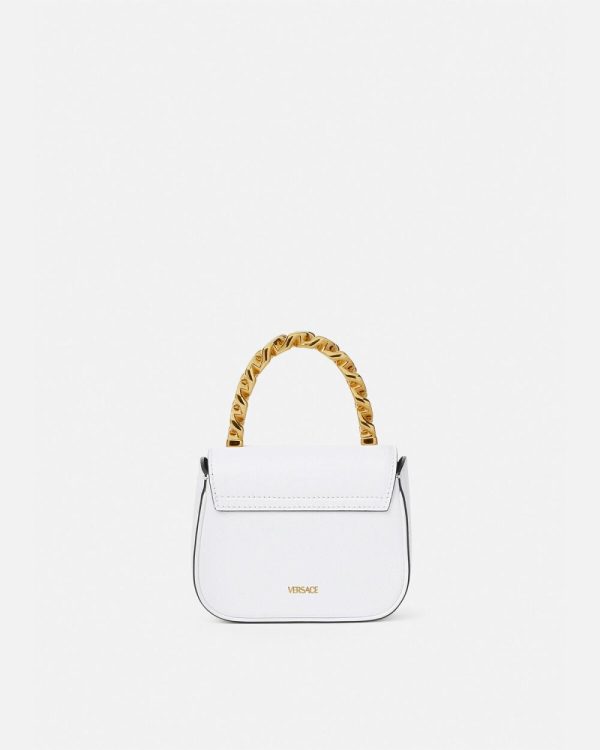 The La Medusa mini bag has been crafted in Italy from grained leather. The central Medusa is instantly recognizable, and the fixed-chain top handle adds an alternate carry option along with the detachable and adjustable shoulder strap.