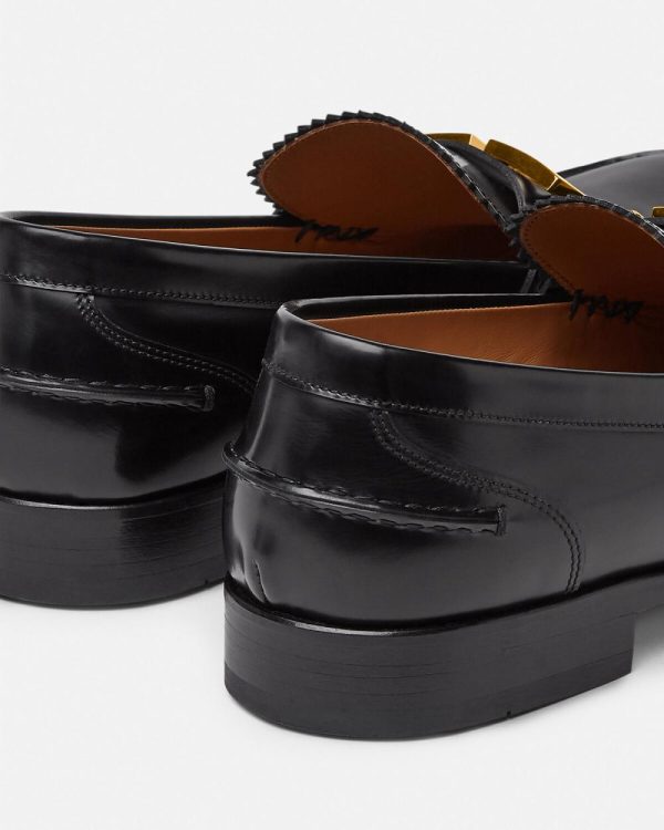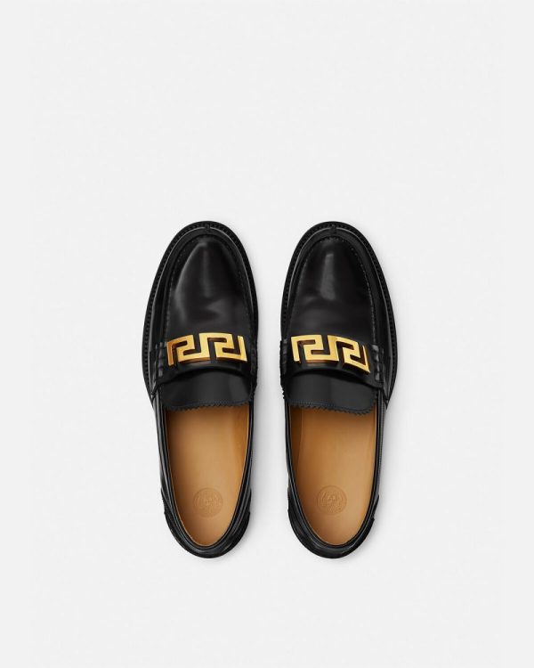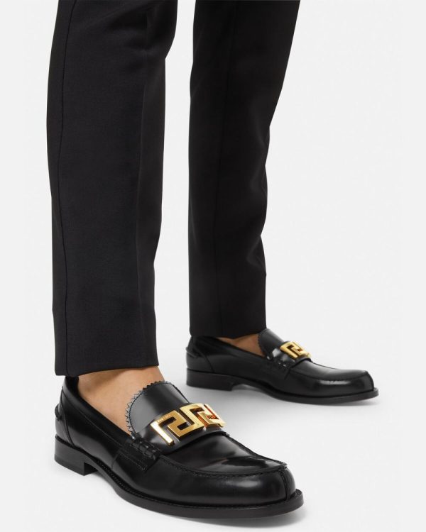Made from a polished leather, these slip-on loafers are accented by the Greca hardware on the penny strap.
