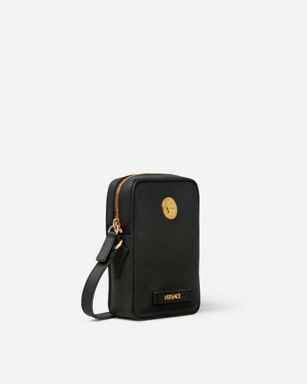 Crafted from leather, this small crossbody pouch bag is adorned with Medusa Biggie hardware and is completed by a detachable and adjustable shoulder strap.