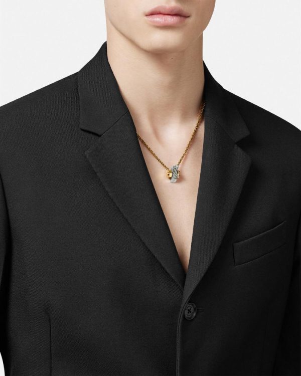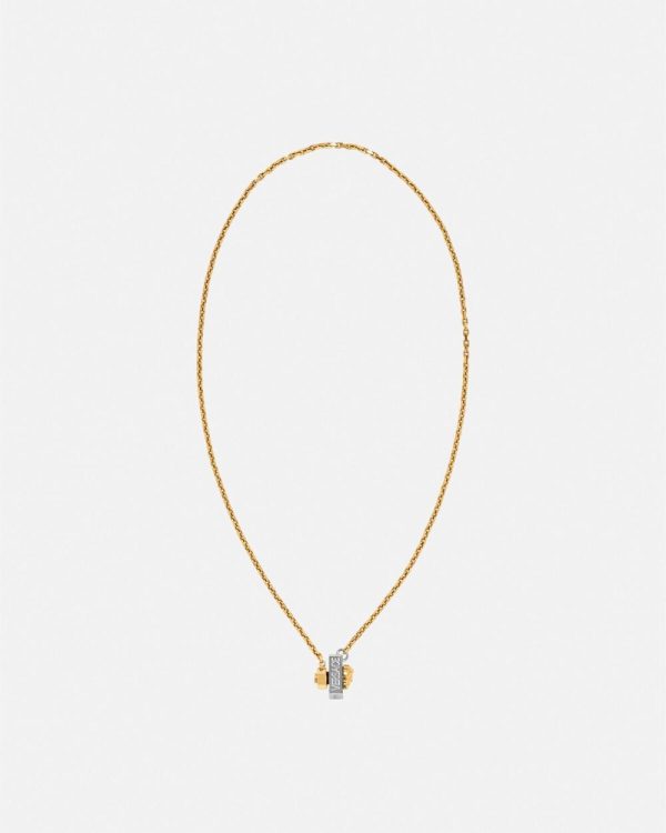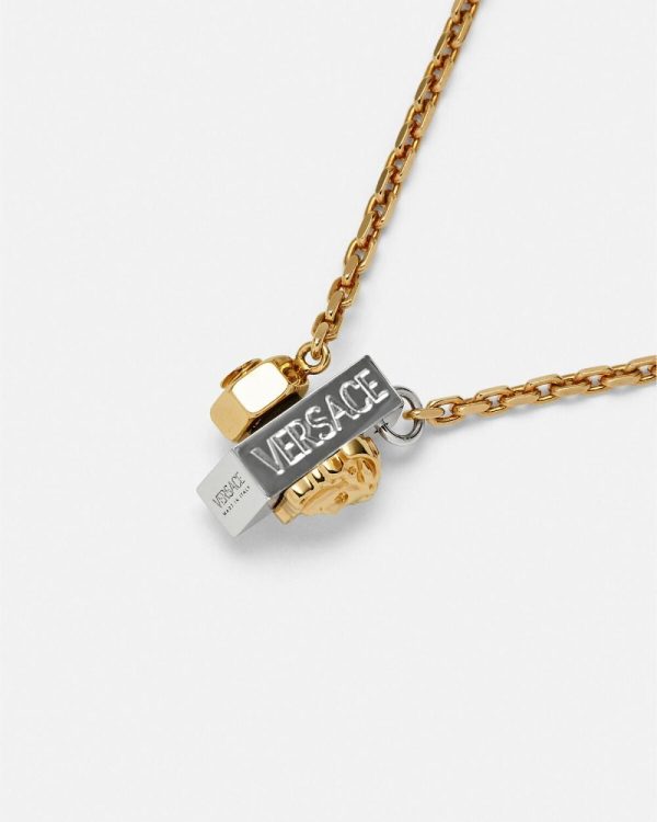 This necklace is part of the Nuts & Bolts collection featuring a bolt-shaped Medusa stud and is detailed with a logo engraving. All Versace jewelry products are lead and nickel free. All the materials are hypoallergenic.