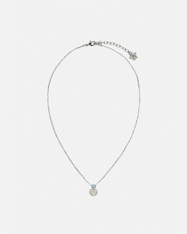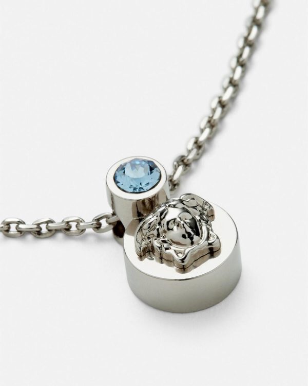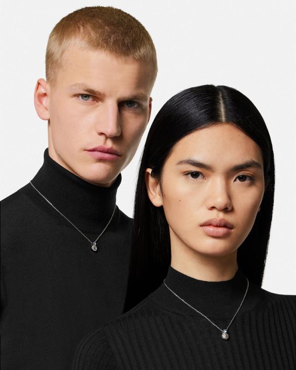 A single crystal stud accents the Medusa pendant necklace. All Versace jewelry products are lead and nickel free. All materials are hypoallergenic.