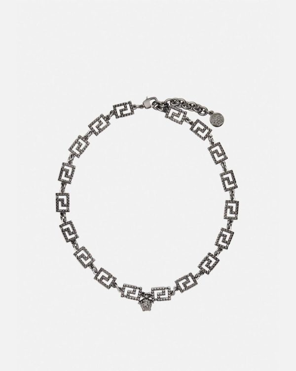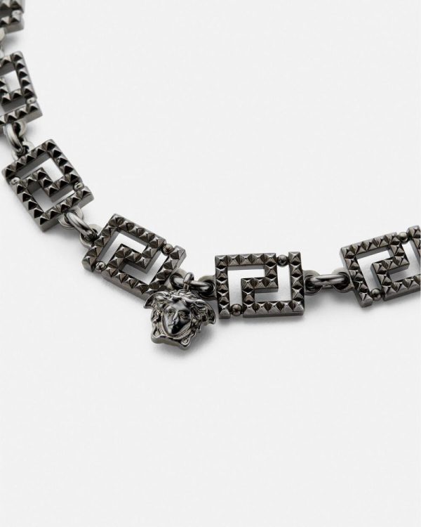 This Greca necklace feature a studded chain design with a lobster clasp closure. All Versace jewelry products are lead and nickel free. All materials are hypoallergenic.