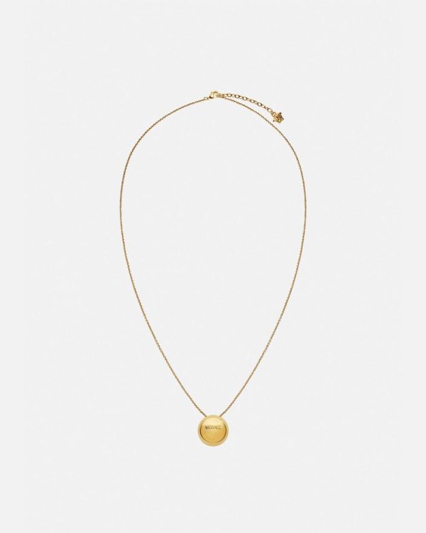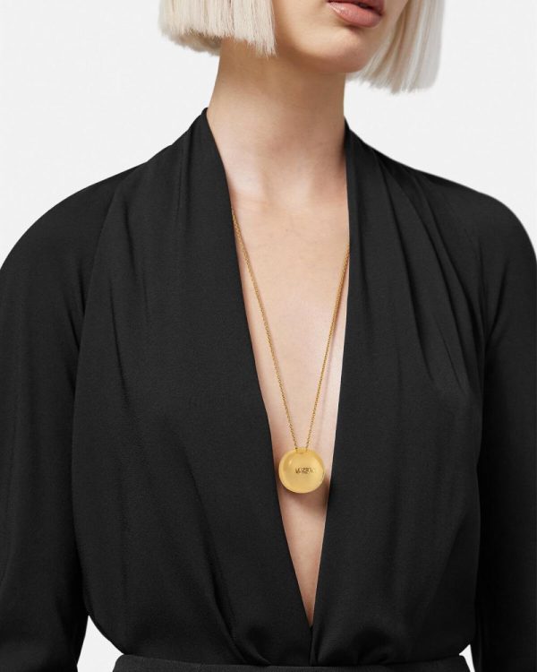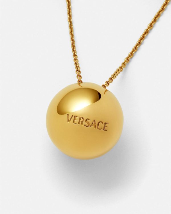 This necklace features a movable spheric charm with a logo engraving. All Versace jewellery products are lead and nickel free. All materials are hypoallergenic.