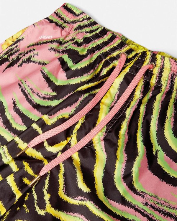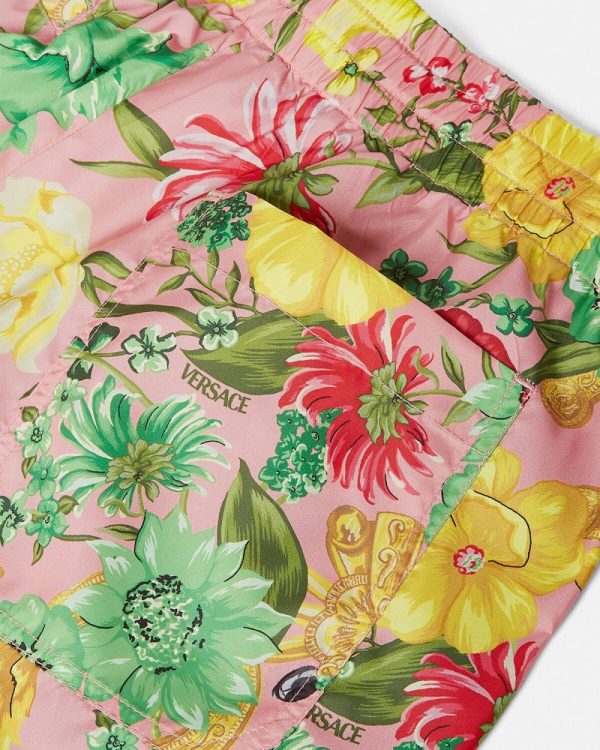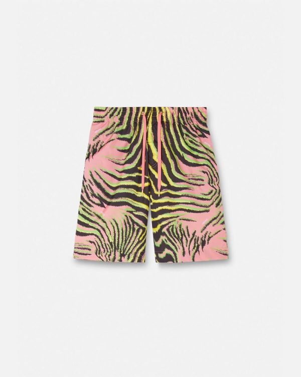 Crafted in a technical material, these knee-length shorts have a drawstring waistband, featuring a front Tiger printed panel and back Wildflower West print.
