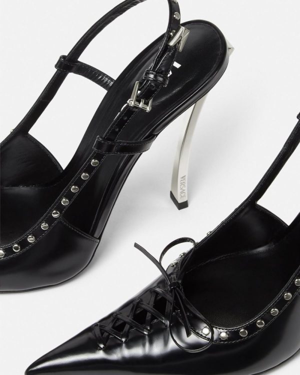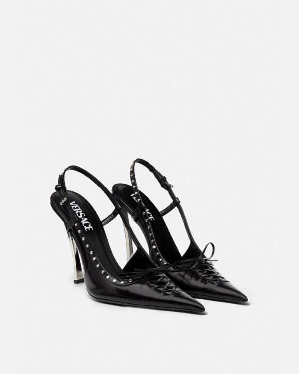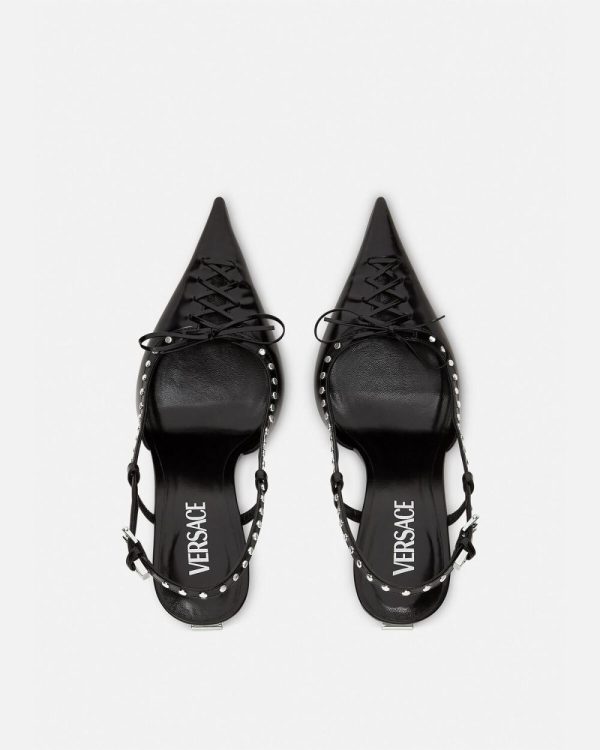 Pin-Point | Women Versace Laced Pin-Point Slingback Pumps Blacksilver