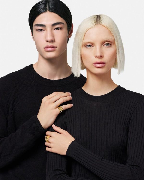 This ring features a Medusa emblem at the centre and a wide-band design. All Versace jewellery products are lead and nickel free. All materials are hypoallergenic.