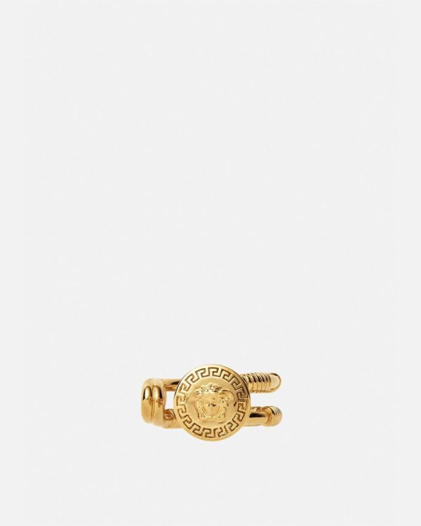 The iconic Safety Pin curled into a ring, with the central Medusa on the top. All Versace jewelry products are lead and nickel free. All products are hypoallergenic.