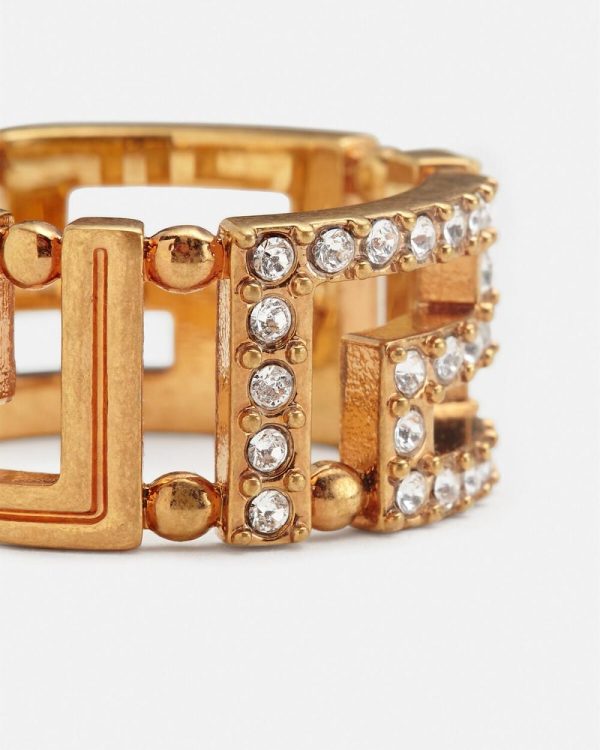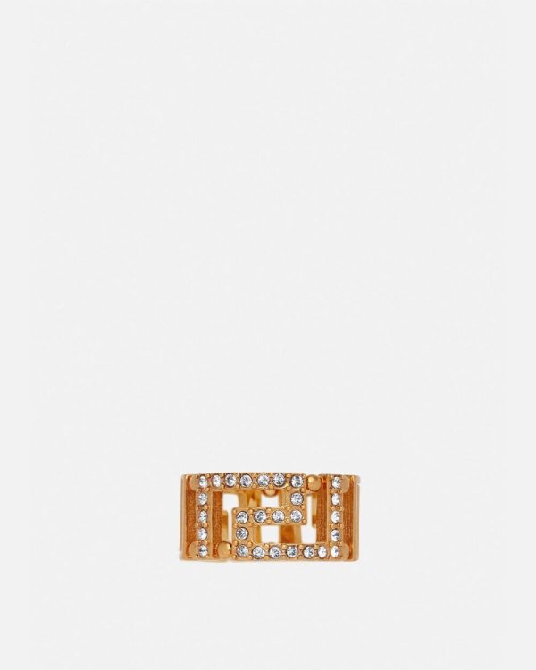 Greca pattern ring with crystal embellishments. All Versace jewelry items are lead and nickel free.