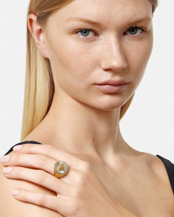 Ring from the Medusa Biggie line with the signature hardware. All Versace jewelry products are lead and nickel free. All materials are hypoallergenic.