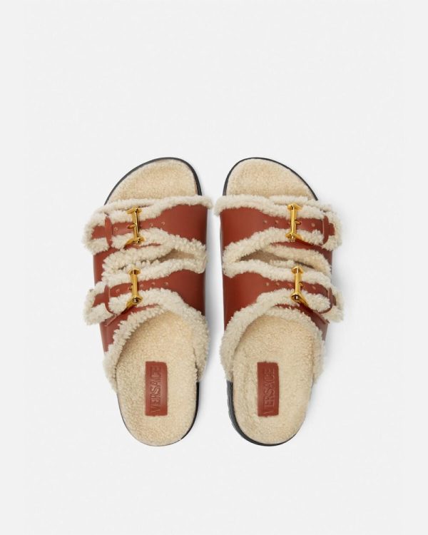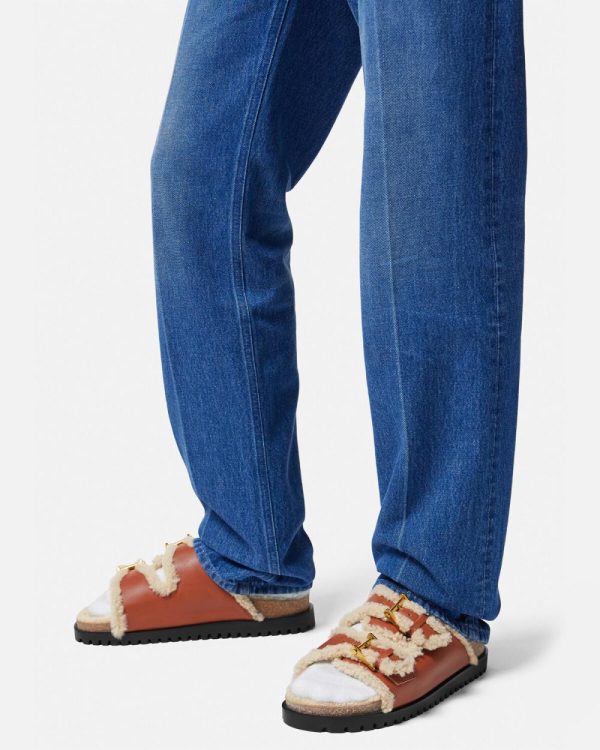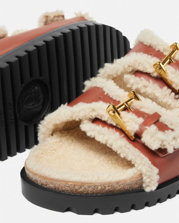 These slip-on sandals are set on moulded cork midsoles and rubber soles for a lightweight step. They’re made from suede upper straps with a shearling lining.