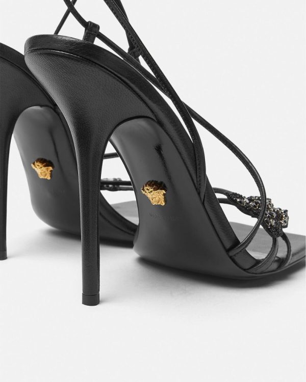 Sandals | Women Versace Crystal Butterflies Satin Sandals Black