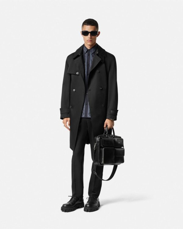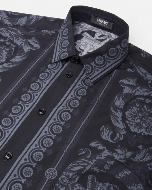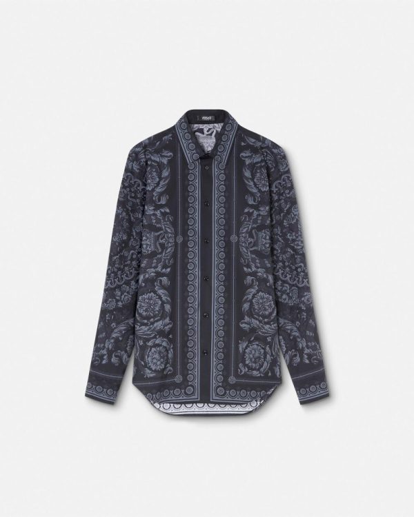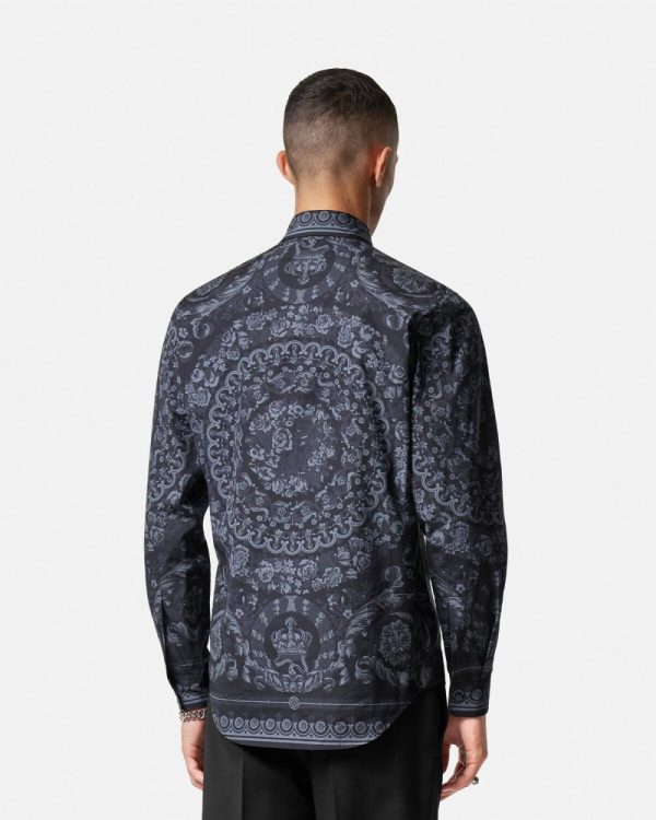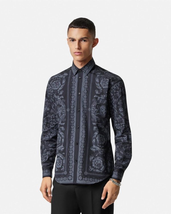 Long-sleeved cotton poplin shirt featuring a tonal Barocco print throughout in a slim fit.