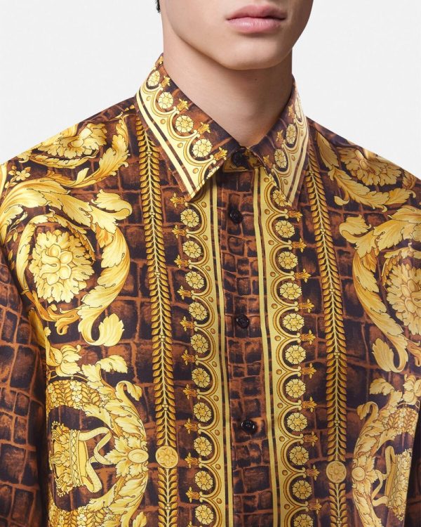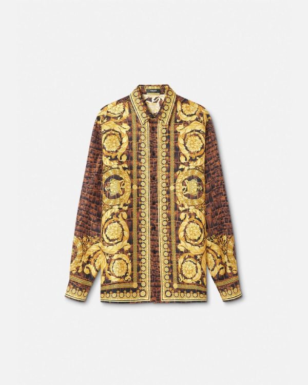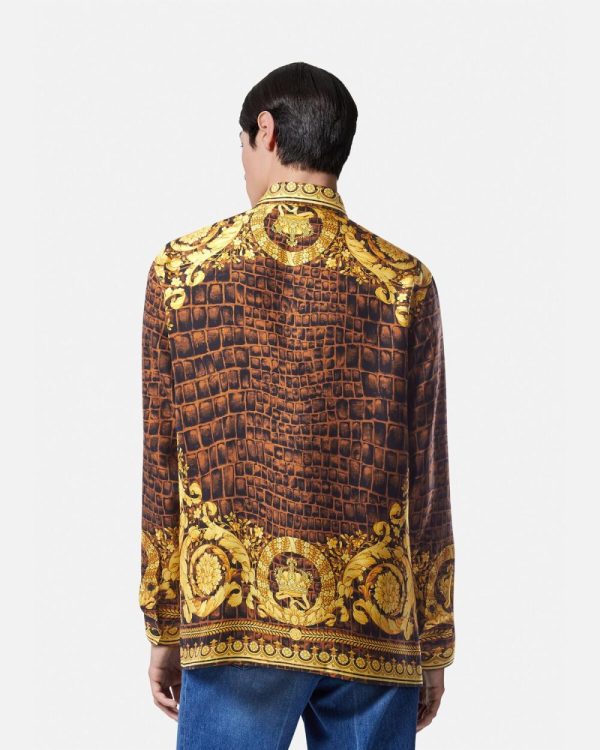 This collared long-sleeved shirt features a silk Baroccodile print – the signature Barocco motif over a seasonal crocodile pattern.