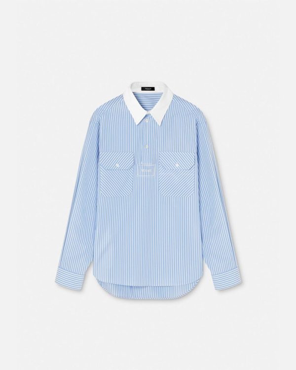 This long-sleeved shirt is made in a loose fit from a striped cotton poplin, detailed with an embroidered logo at the front and a three-button placket at the front.