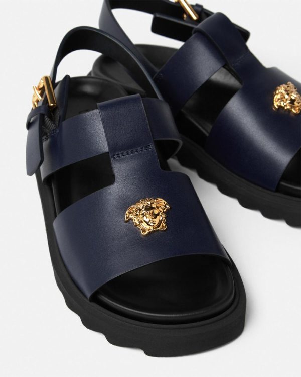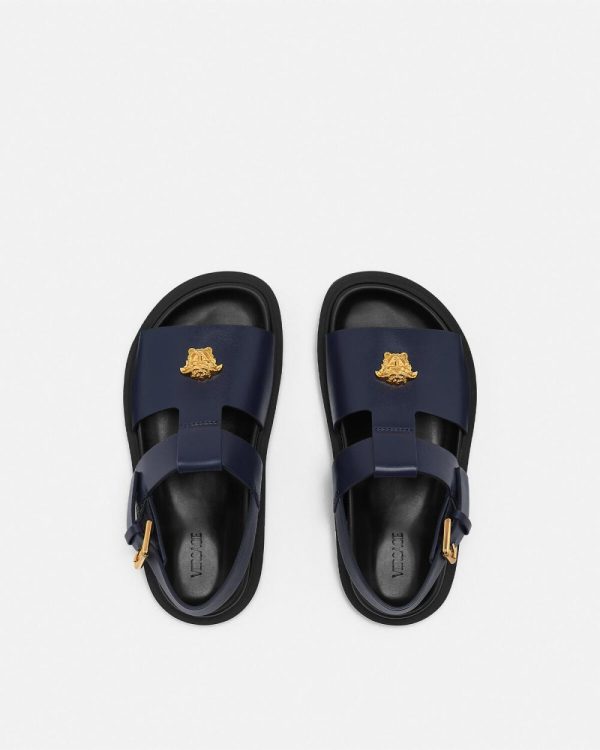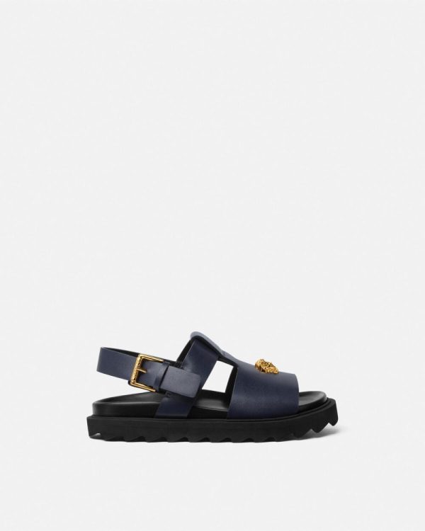 These versatile leather sandals feature a La Medusa hardware on the upper and an adjustable back strap.