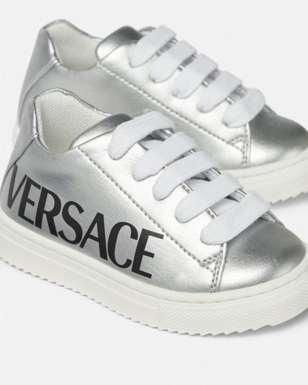 These baby sneakers are set on rubber soles with a side Versace Logo motif and lace-up design.