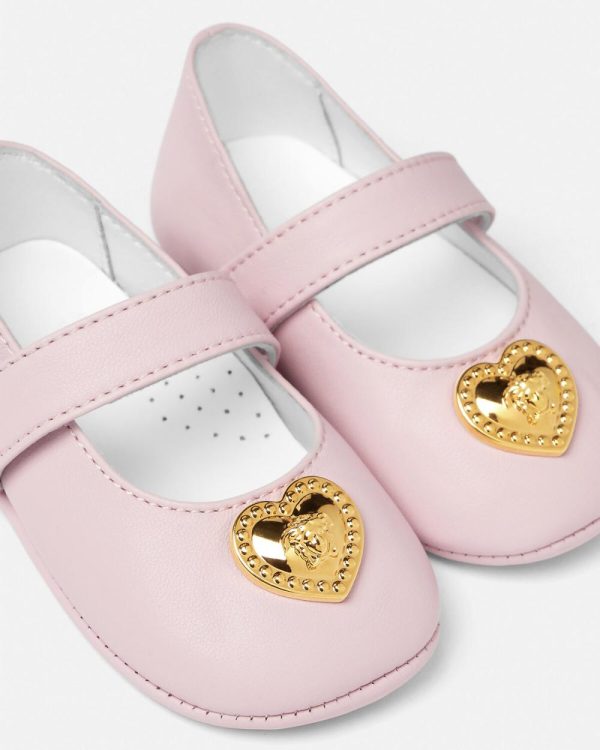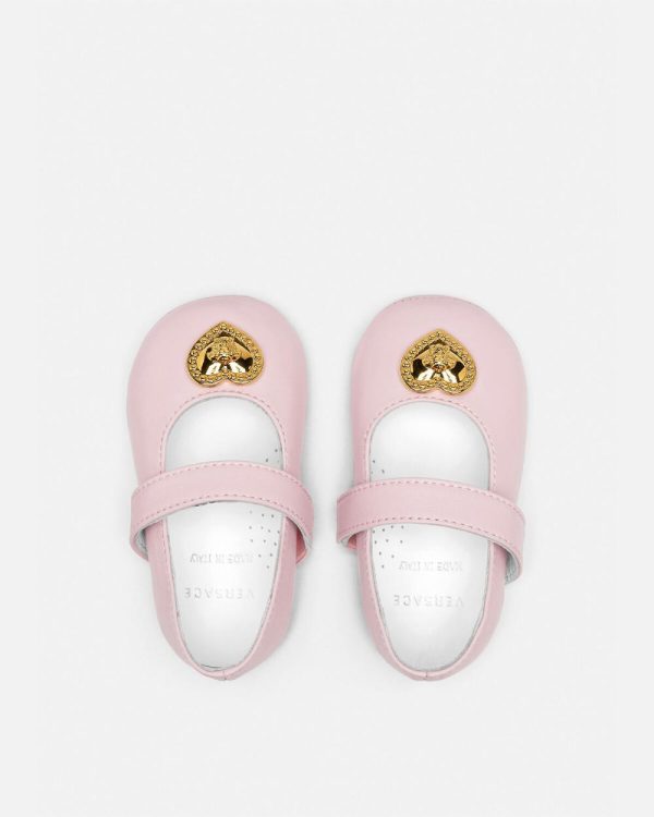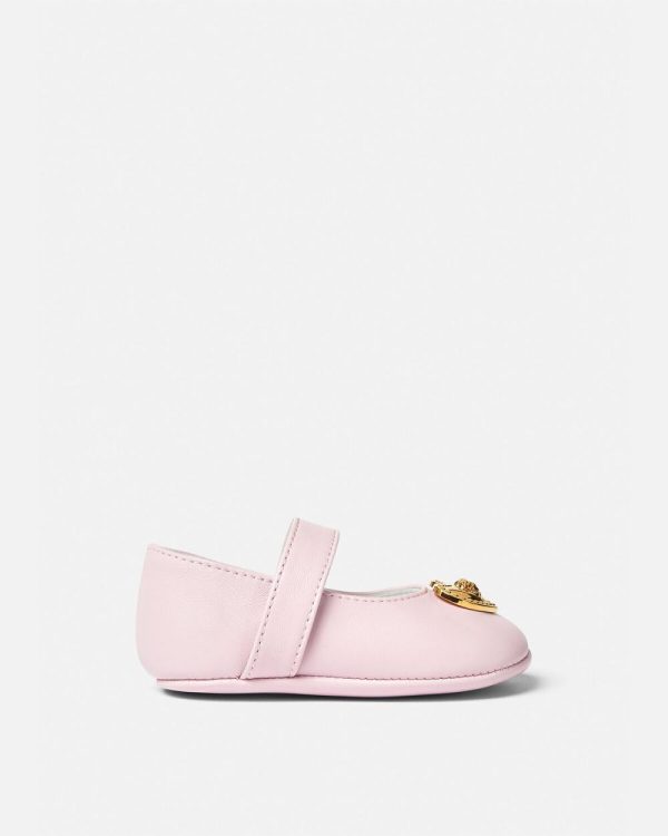Perfect for the little princesses these ballerinas feature a heart shaped Medusa plaque at the front and an elasticized strap for a comfortable fit.