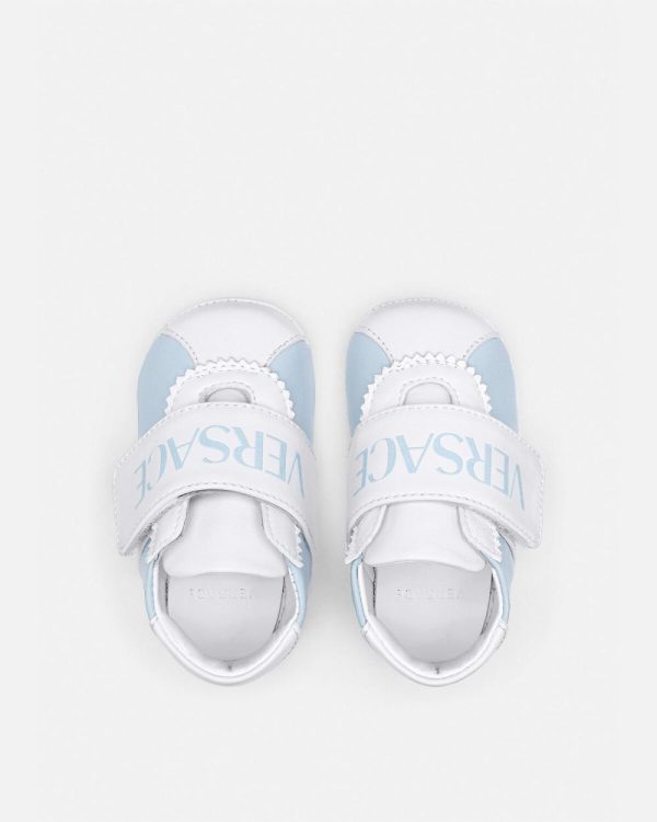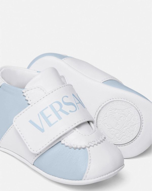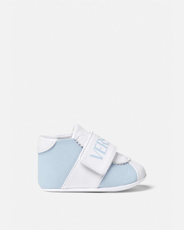 A Versace essential for little ones, these baby shoes are detailed with a Versace Logo on the adjustable strap.