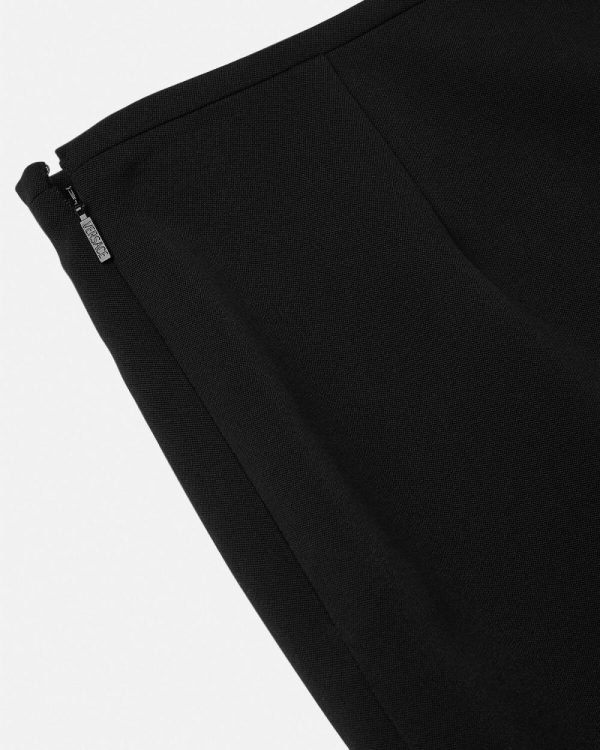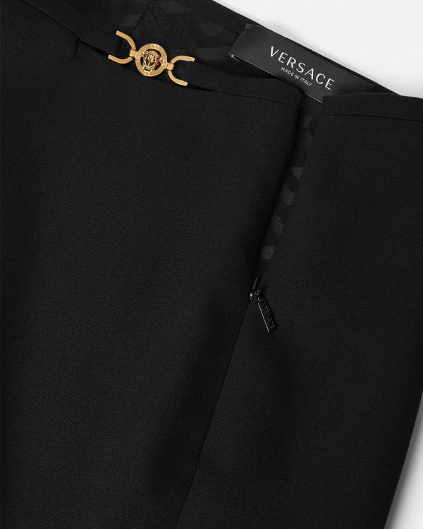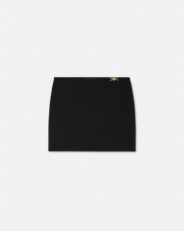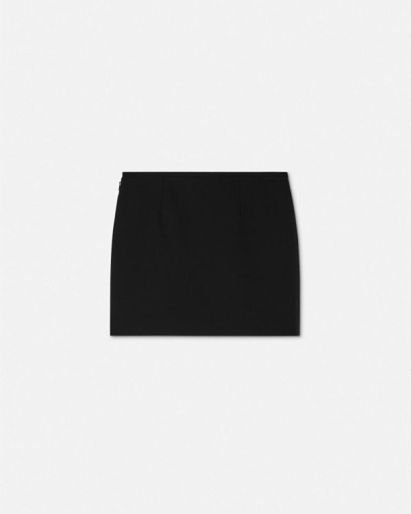 A stretch wool blend mini skirt accented by Medusa ’95 hardware.