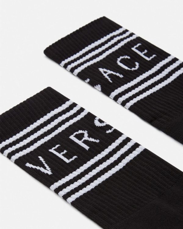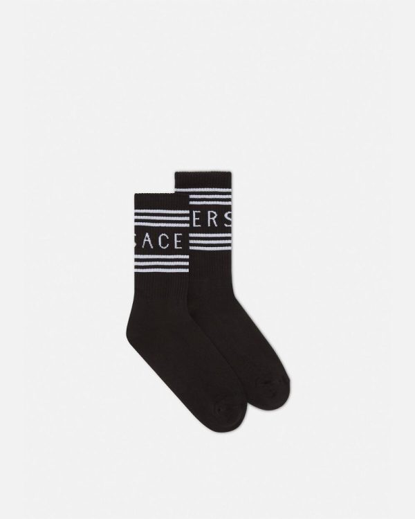 These ankle-length socks are made from cotton with a ribbed logo print at the trims.