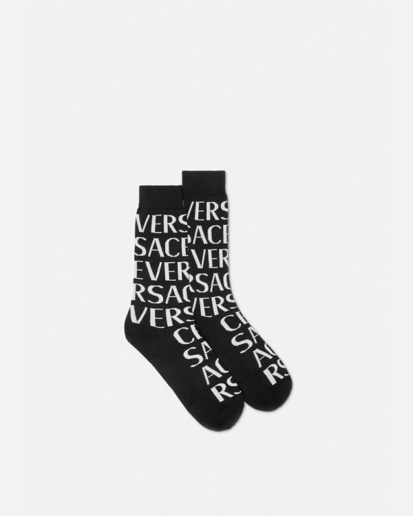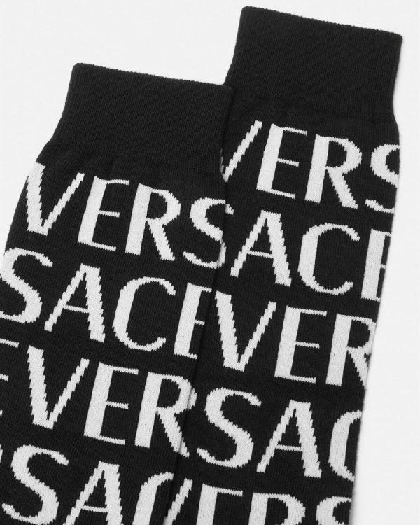 Ribbed cotton blend socks featuring a jacquard Versace Allover motif.