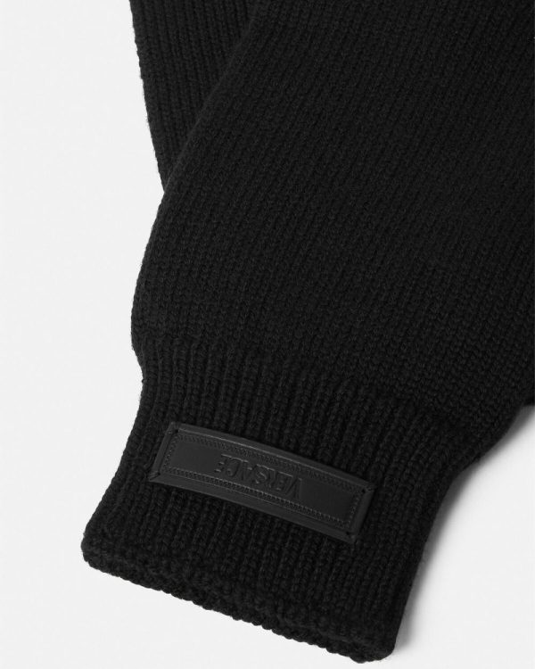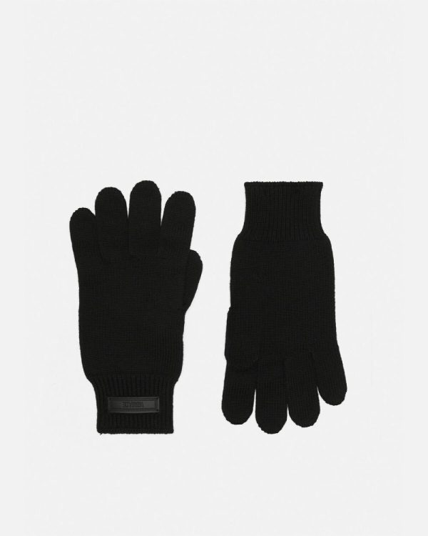 These ribbed-knit gloves feature a leather logo label at the wrist on the left-hand glove.