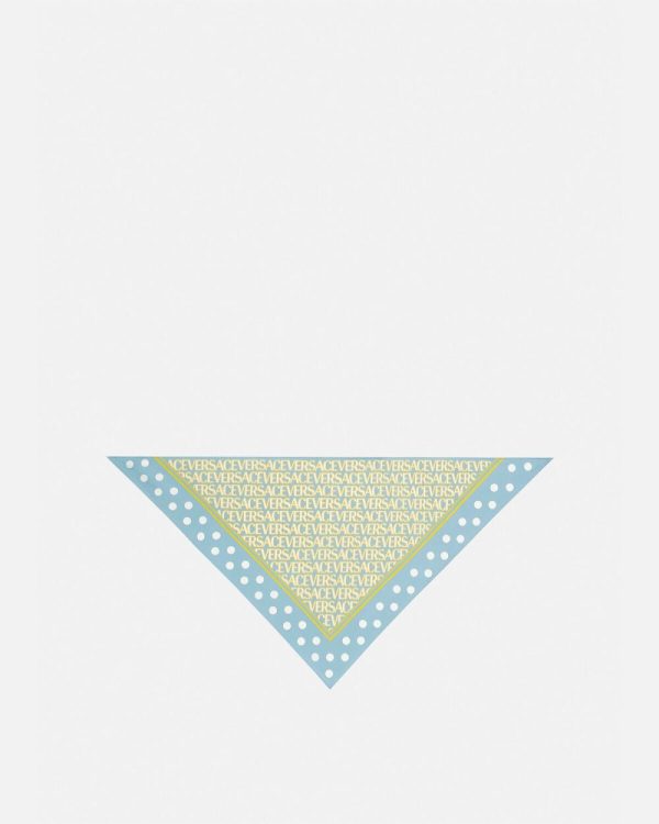 This foulard is made from pure silk and features the Versace Allover print, with outlined lettering and a polka dot background.