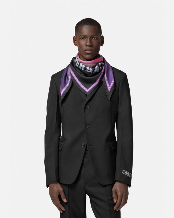 This triangle foulard is crafted from pure silk twill featuring the Versace Hills placement print.