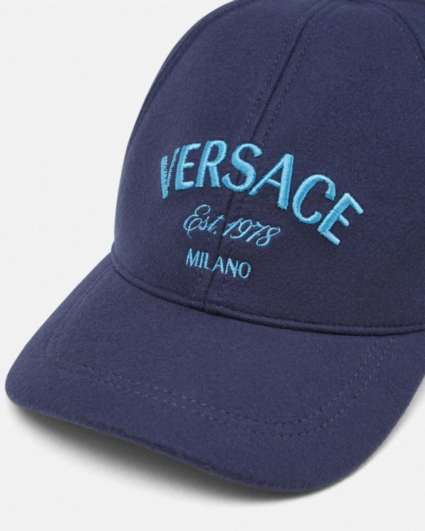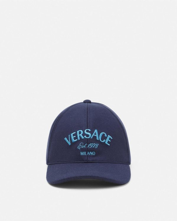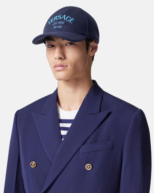 Wool and nylon blend baseball cap featuring a Versace Milano Stamp embroidery with the House’s founding year.