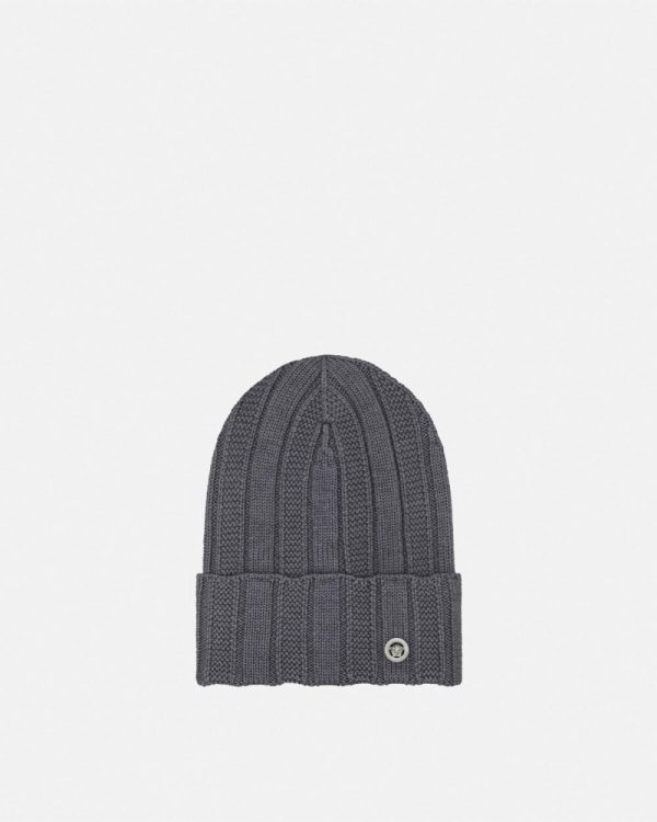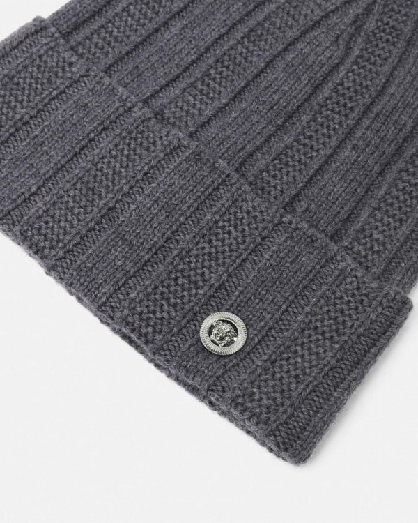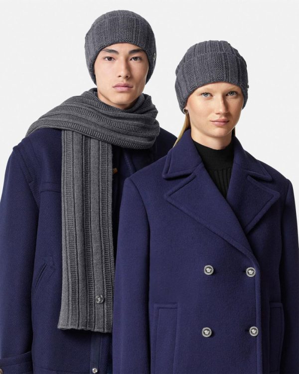Soft Accessories | Women/Men Versace Medusa Wool Ribbed Beanie Black