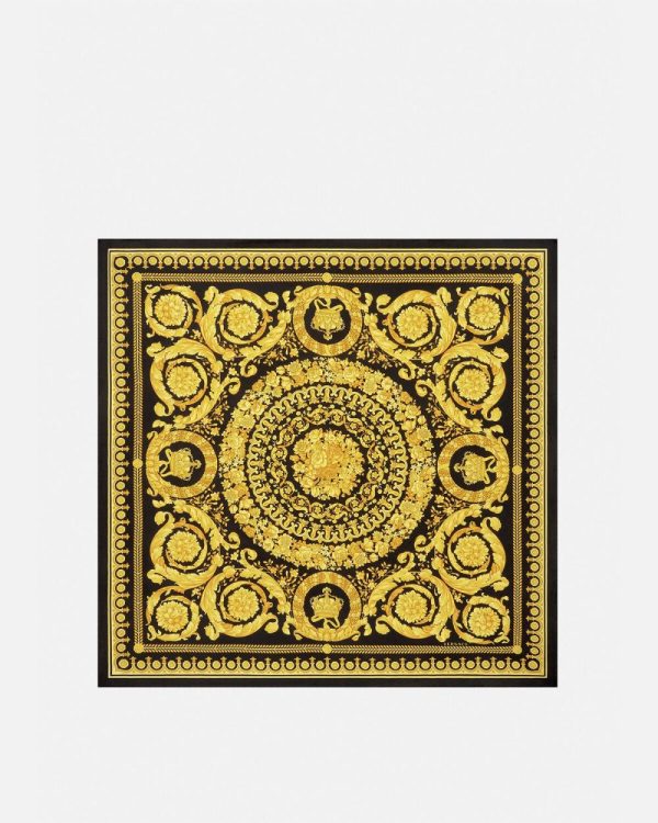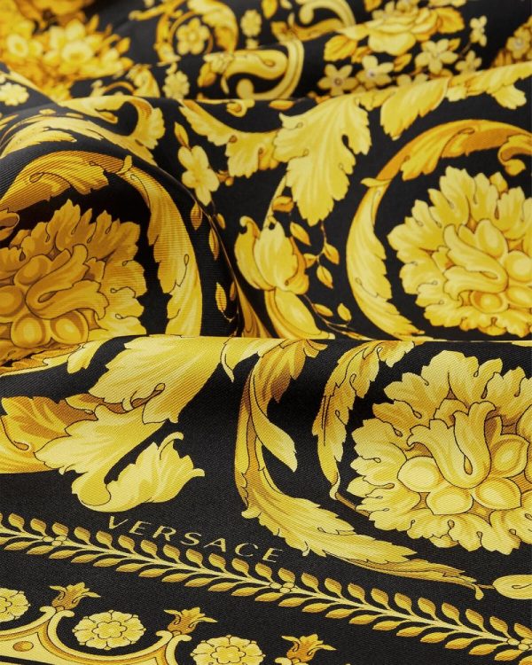 Crafted from pure silk, this foulard features the signature Barocco print. First introduced by Gianni Versace in the early ’90s, the print juxtaposes stylised acanthus leaves with a solid background.