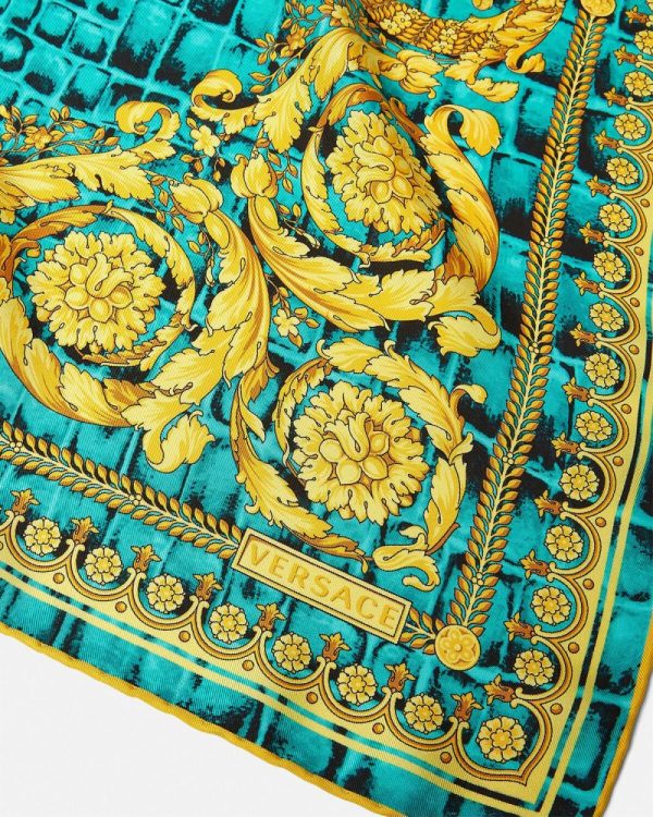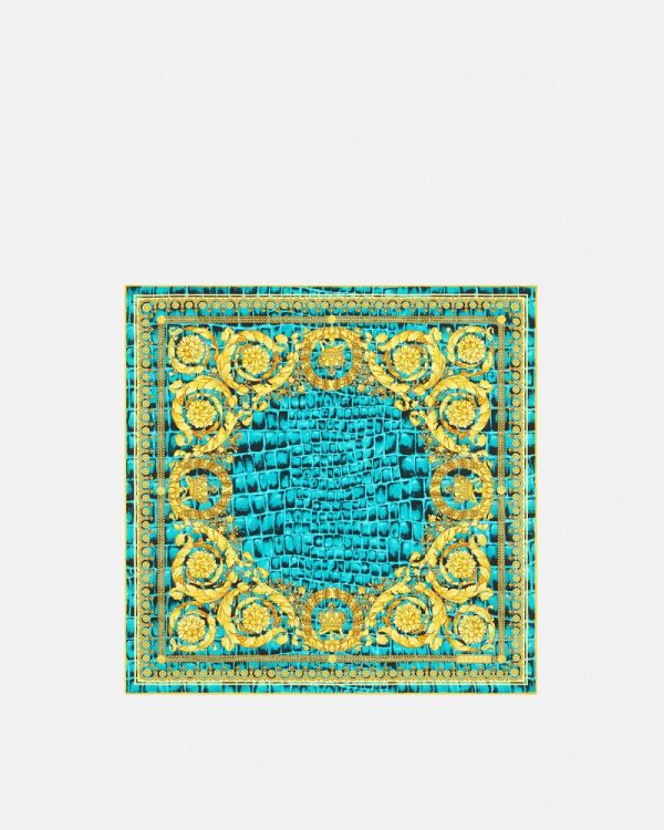 This silk foulard features the Baroccodile print with the signature Barocco motif against a crocodile patterned background.