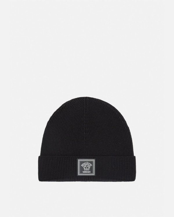 Soft Accessories | Women Versace Safety Pin Ribbed Beanie Black