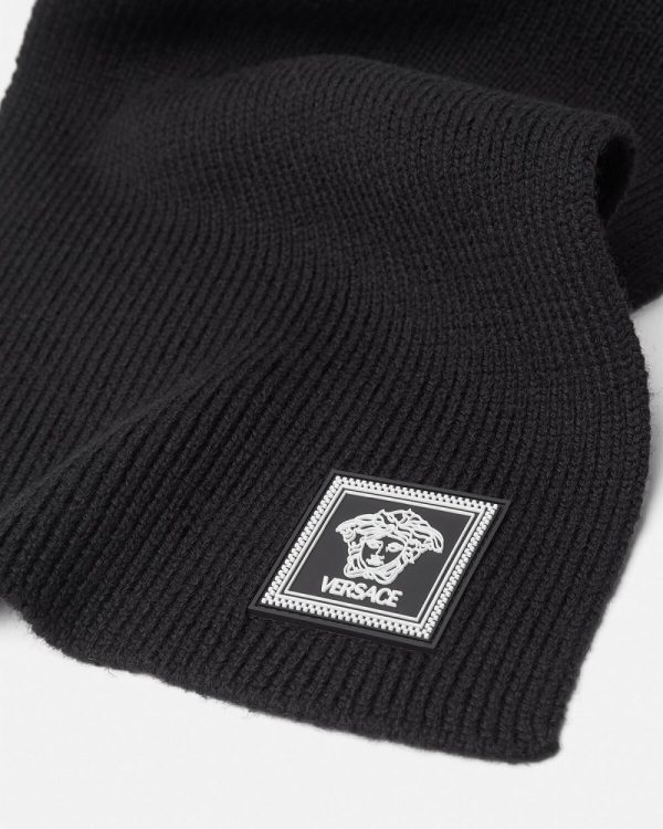 Ribbed-knit from pure wool, this warm scarf is detailed with a subtle Medusa motif.