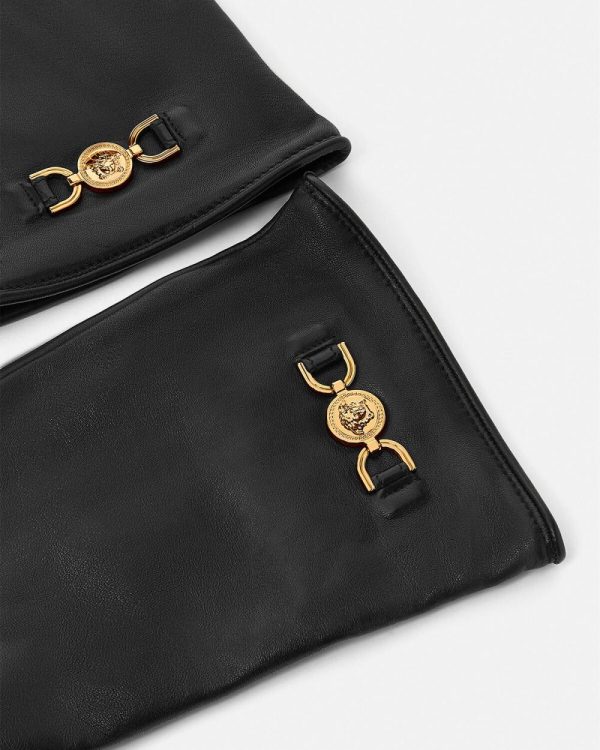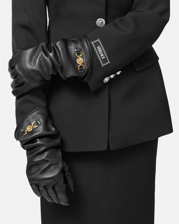 Supple leather gloves detailed by Medusa ’95 hardware at the wrist with a soft cashmere lining.